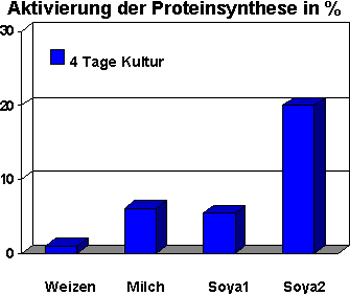 An 2 und 4 Tage alten Fibroblasten-Kulturen wurden verschiedene Peptidextrakte auf Förderung der Proliferation und der Proteinsynthese untersucht (Abbildung 2).