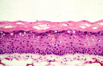 Die in-vitro-Hautmodelle eröffnen neue Wege, all dies Unzulänglichkeiten zu vermeiden. Durch sukzessives Züchten einer Dermis aus Fibroblasten und einer Epidermis mit Stratum Corneum aus Keratinocyten entsteht innerhalb von 5 Wochen ein Ganzhautmodell (Abbildung 4), das alle wesentlichen Schichten der Haut enthält (7) (Abbildung 5).